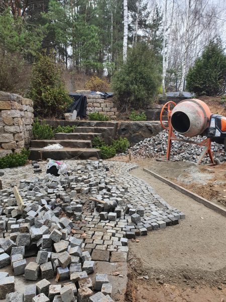 — благоустройство (мощение тротуарной плиткой и камнем, лестницы, подпорные стенки ….)